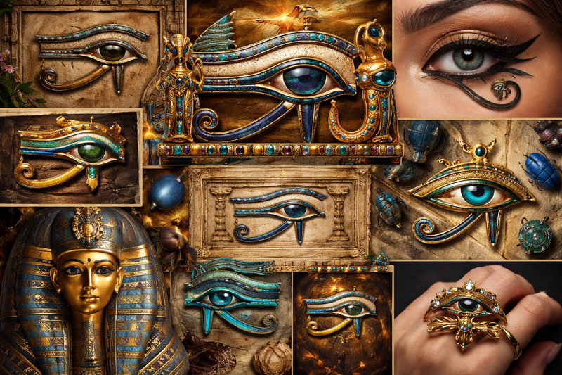 Avec le temps, ce symbole a été réinterprété et stylisé de multiples façons. Les versions modernes peuvent être plus épurées, géométriques ou au contraire très détaillées, intégrant parfois d’autres éléments graphiques ou symboliques. Certaines représentations fusionnent même l’Œil d’Horus avec d’autres motifs spirituels ou artistiques, témoignant de sa capacité à s’adapter aux sensibilités contemporaines.