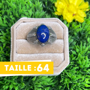 La monture en argent sterling 925 garantit une finition de haute qualité, mettant en valeur les nuances riches et profondes du Lapis Lazuli, avec ses éclats dorés rappelant un ciel étoilé. Disponible dans différentes tailles, cette bague s'ajuste parfaitement à votre doigt pour un confort optimal.