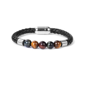 Bracelet homme cuir Oeil de tigre, Oeil de chat, Oeil de faucon