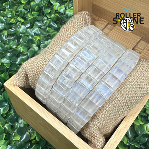 Laissez-vous séduire par l'élégance mystique de ce bracelet, véritable hommage à la délicatesse et à l'éclat naturel de la Pierre de lune. Classée 5A pour sa qualité exceptionnelle, la pierre de lune capte la lumière d'une manière unique, offrant un scintillement nacré qui évoque la magie de la lueur lunaire.