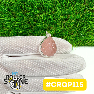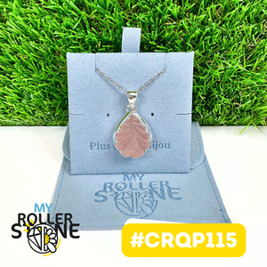 Pendentif en Quartz Rose Gravé Feuille en Argent 925