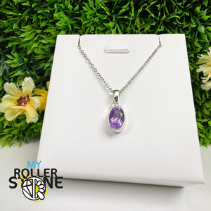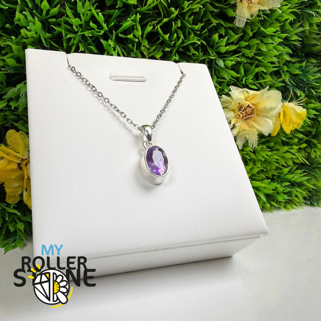 Ce pendentif en Améthyste naturelle taillée monté en argent 925 révèle de superbes nuances violettes, allant du lavande délicat au violet profond. Sa taille met en valeur la lumière et la profondeur de la pierre, offrant un bijou élégant et intemporel.