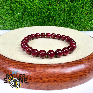 Bracelet composé de Rubis naturel de qualité 5A, apprécié pour sa teinte rouge profonde et vibrante. Pierre noble par excellence, le Rubis se distingue par son éclat, sa densité visuelle et son caractère affirmé, en faisant une matière de choix pour les créations premium My Roller Stone. Bracelet monté sur élastique.