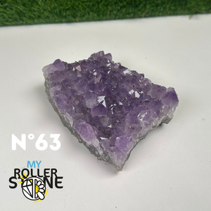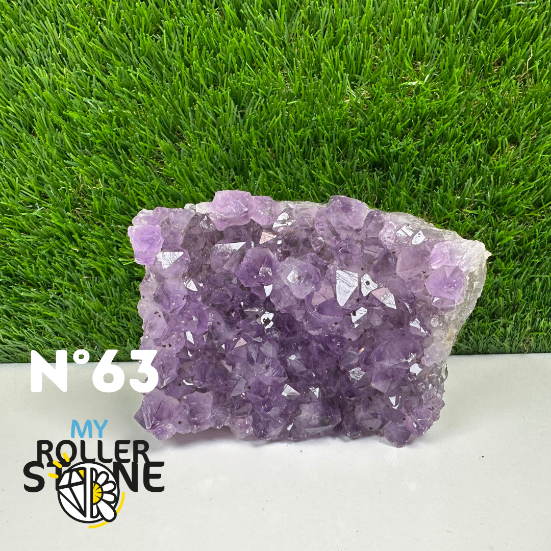 Pièce unique – La druze présentée (#63) est celle que vous recevrez. Chaque formation d’Améthyste est unique par sa taille, sa teinte et sa disposition cristalline.