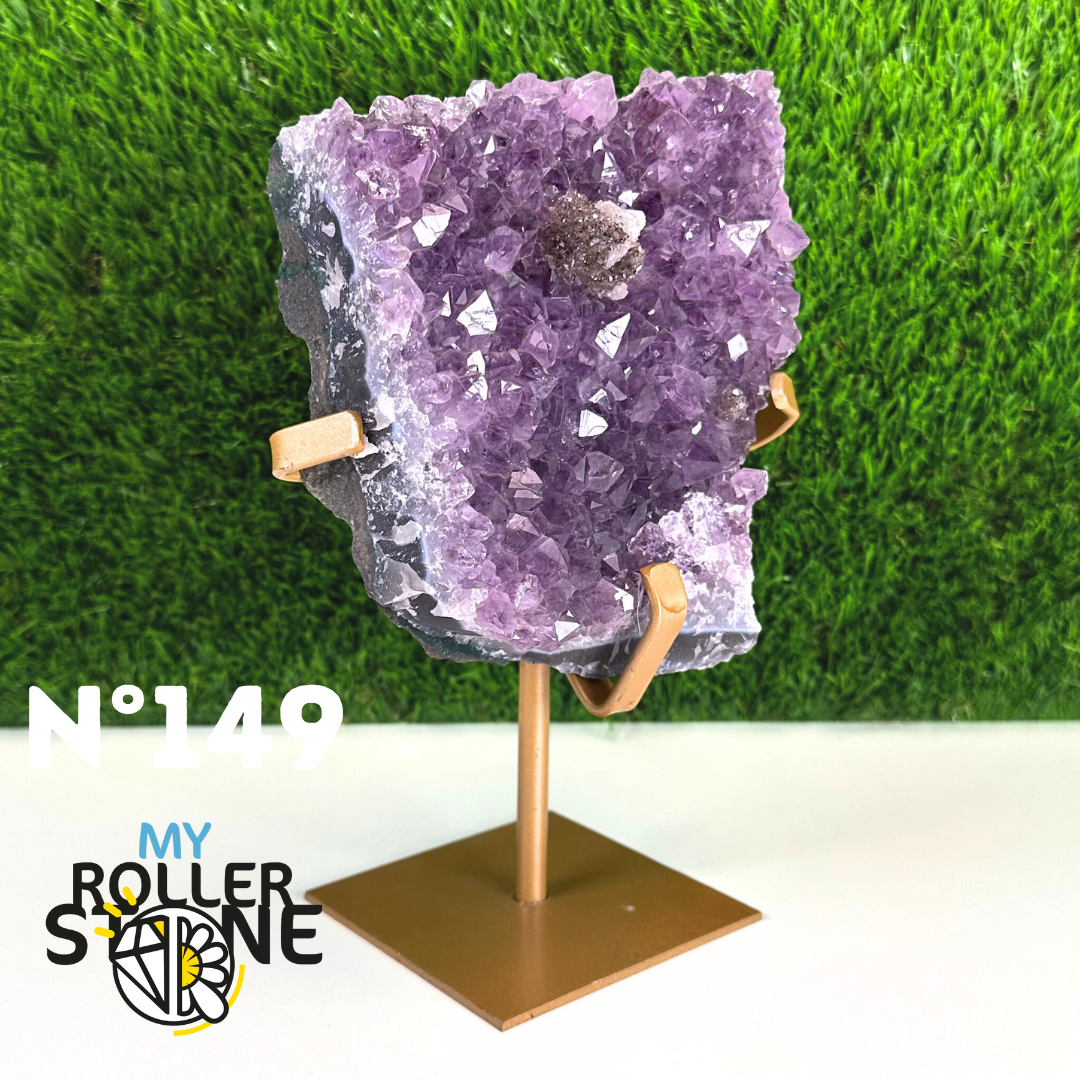 Druze d’Améthyste Naturelle sur Présentoir Métal Doré #149
