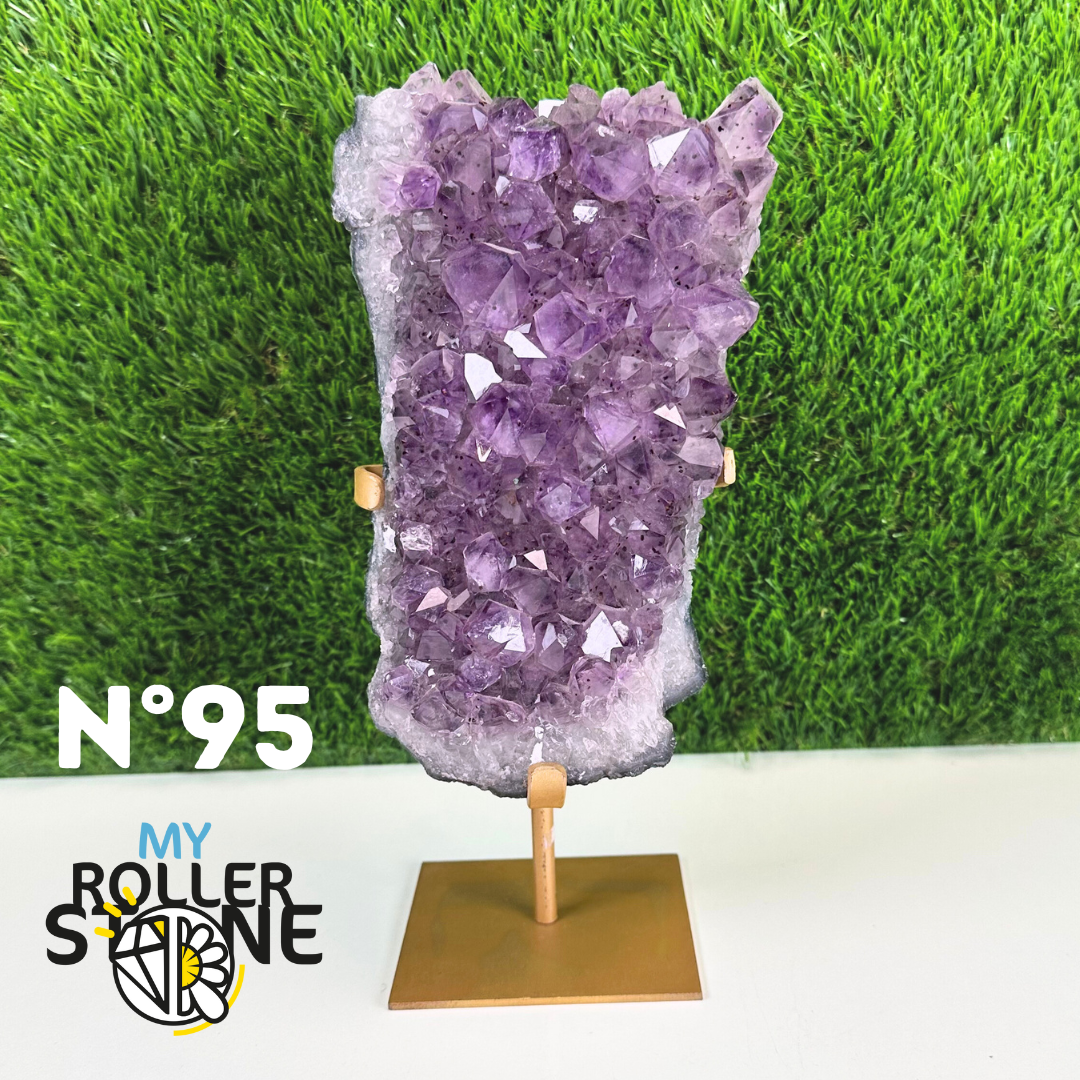 Druze d’Améthyste Naturelle sur Présentoir Métal Doré #95