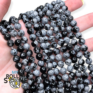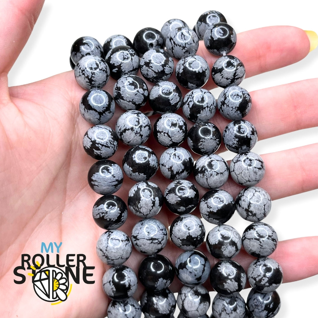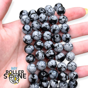 L'Obsidienne Flocon de Neige est une variété populaire d'Obsidienne, caractérisée par ses inclusions blanches qui ressemblent à des flocons de neige sur un fond noir.