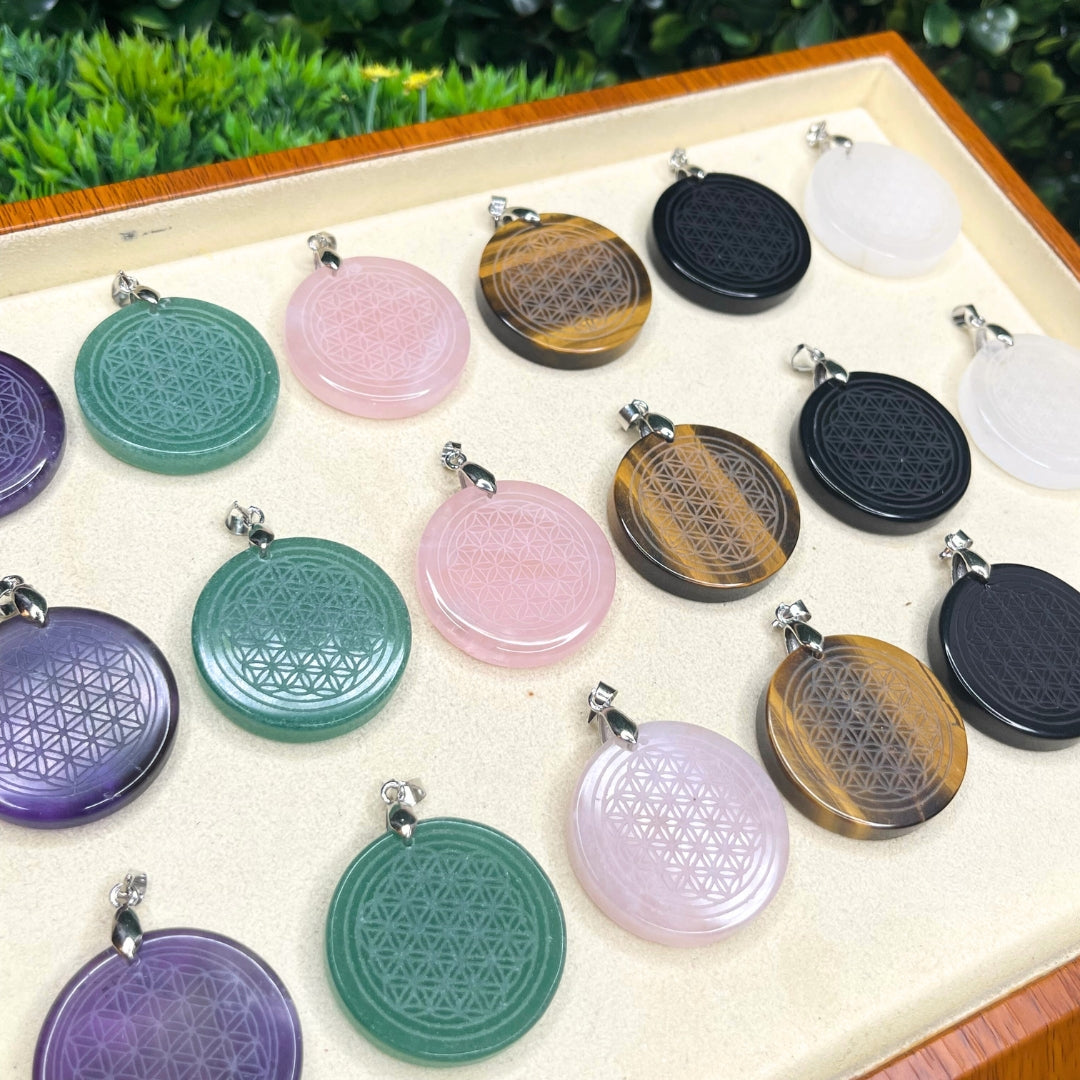 Découvrez l'harmonie entre esthétique et énergie avec nos Pendentifs Fleur de Vie Pierre. Chaque pièce, ornée de la Fleur de Vie sacrée, symbolise l'équilibre et la création universelle. Choisissez parmi une sélection de pierres naturelles, de l'Améthyste apaisante au Cristal de Roche équilibrant ou au Quartz Rose symbolisant l'amour. Ces Pendentifs fleur de vie pierre, façonnés avec minutie, mettent en valeur la beauté unique de chaque pierre.