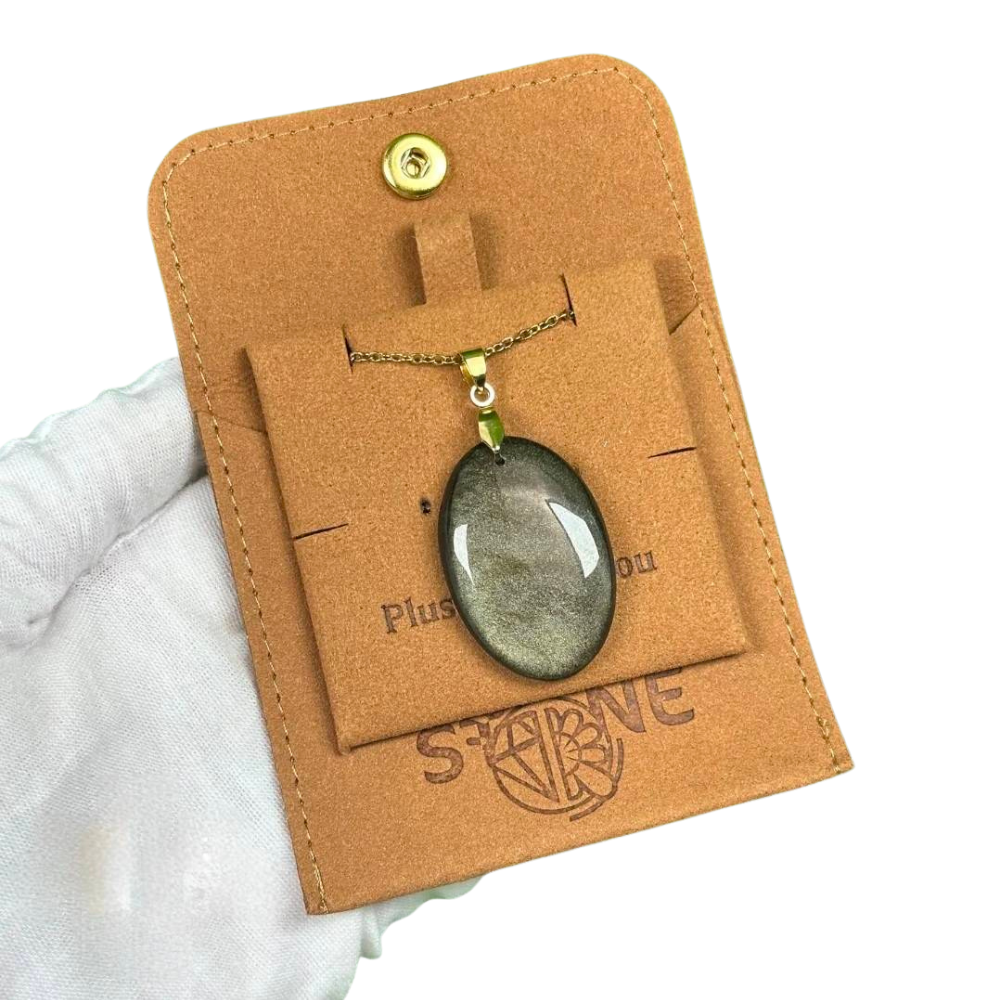 Pendentifs en pierres naturelles authentiques, façonnés en cabochons percés et prêts à l’assemblage. Chaque pièce peut être livrée seule (non montée) ou directement montée en collier avec chaîne en acier inoxydable finition couleur argent ou doré, et pochette en simili cuir de différentes couleurs.