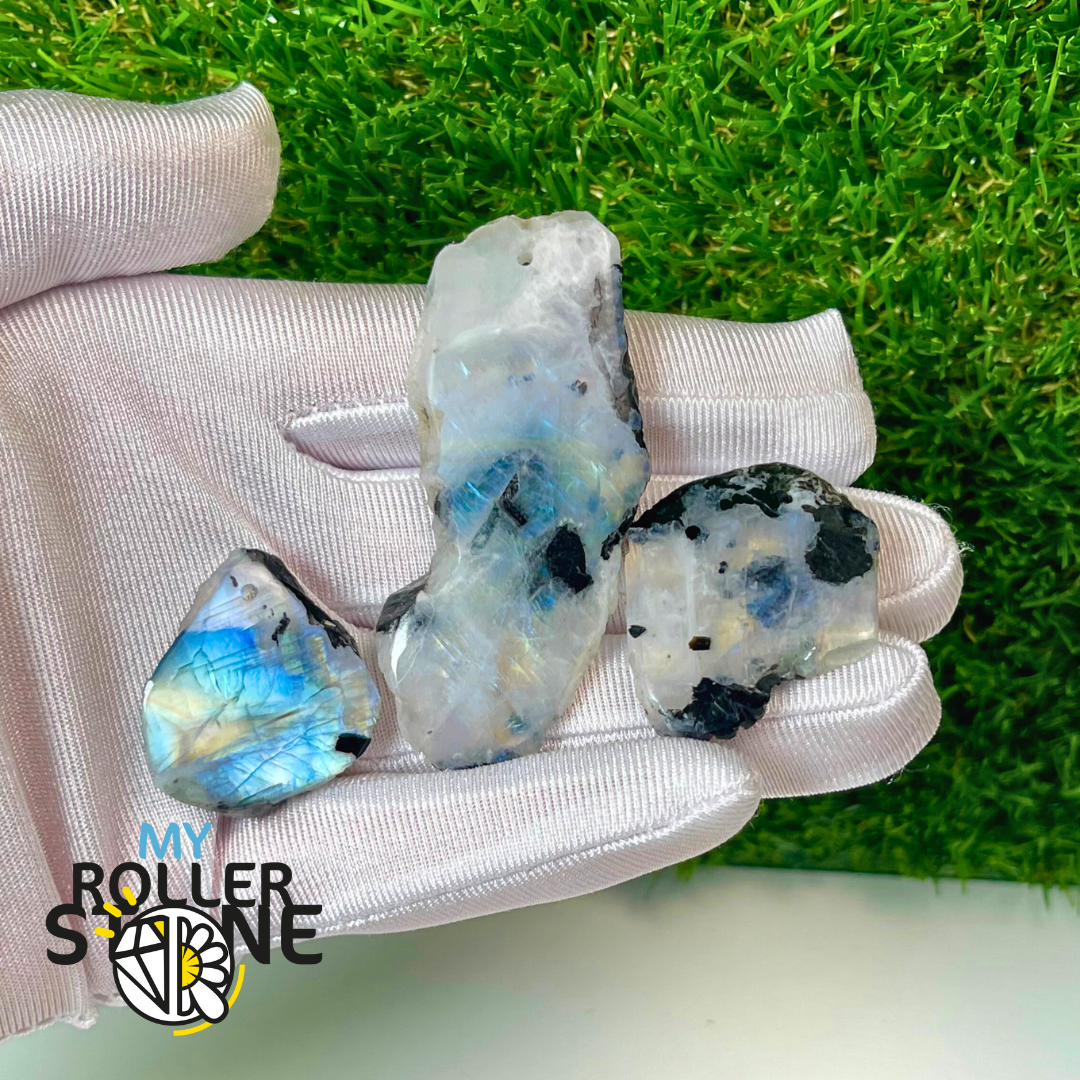 100 % naturelles et sélectionnées avec soin : labradorite, obsidienne, kunzite, malachite, larimar, howlite, opale dendritique, septaria, sodalite, nacre…
