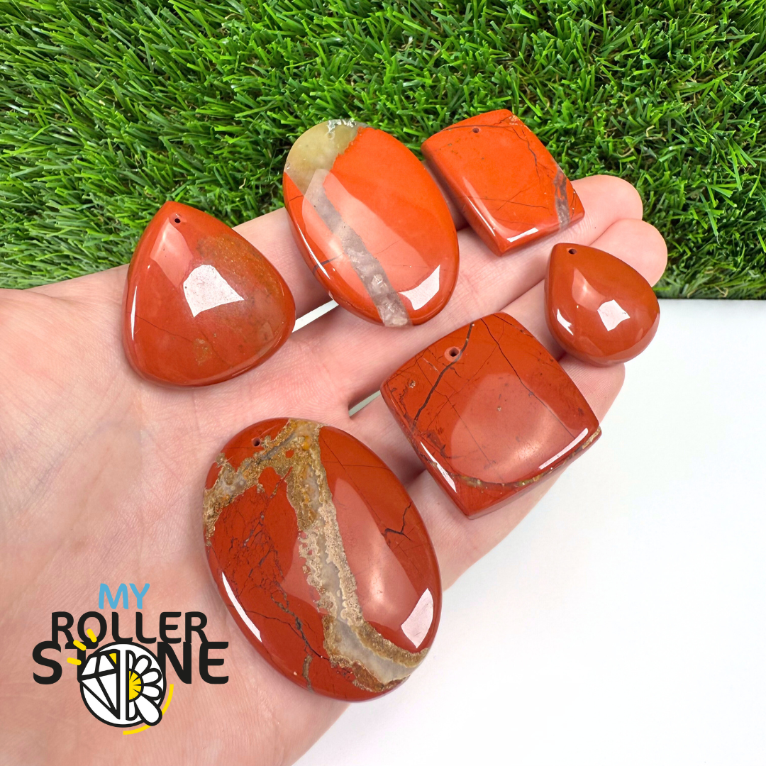 Chaque pendentif en Jaspe Rouge est unique : variations de teinte, veines et silhouettes naturelles garantissent une pièce authentique au caractère fort.