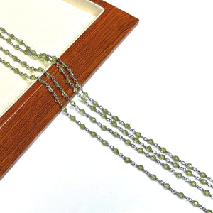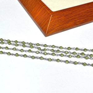 - Chaîne perlée Péridot Argent (chaîne nue : sans anneau et sans fermoir)