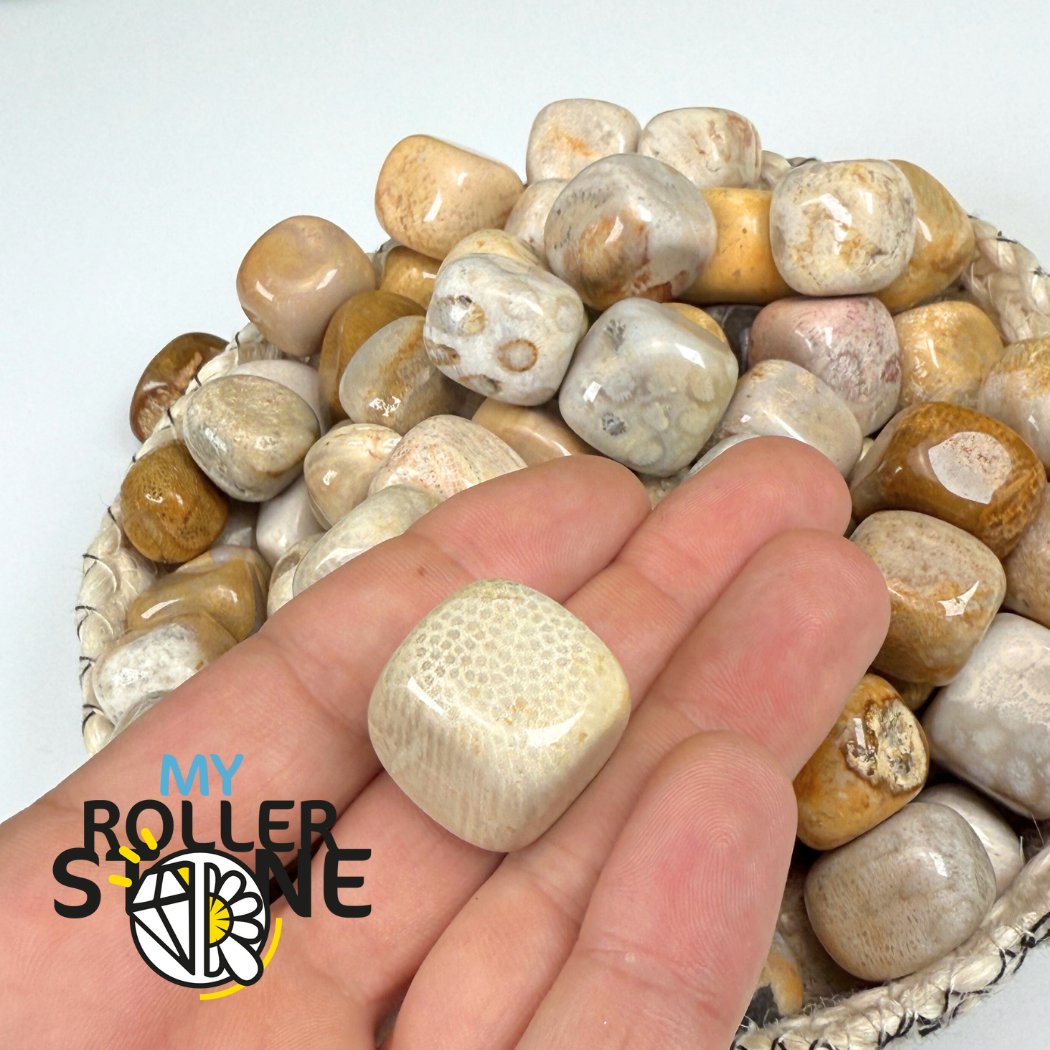 pierre roulée en Pierre de Chrysanthème naturelle se distingue par ses motifs floraux caractéristiques, formés naturellement dans la roche, évoquant des fleurs stylisées contrastant sur un fond sombre. Finement polie, elle offre une surface lisse et agréable au toucher, tout en conservant la force graphique et minérale propre à cette pierre singulière. Chaque pierre présente un dessin unique, véritable signature naturelle.