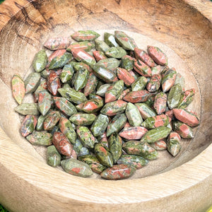 Les qualités d'équilibre et d'harmonie de l'Unakite aident à trouver un équilibre et nous rappellent que, quel que soit notre âge, il y a toujours une chance d'un nouveau départ et d'une large route qui nous attend.