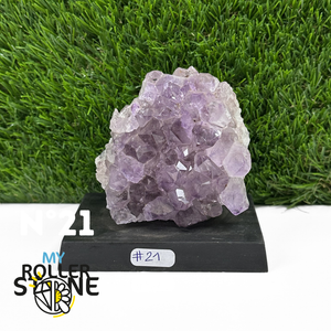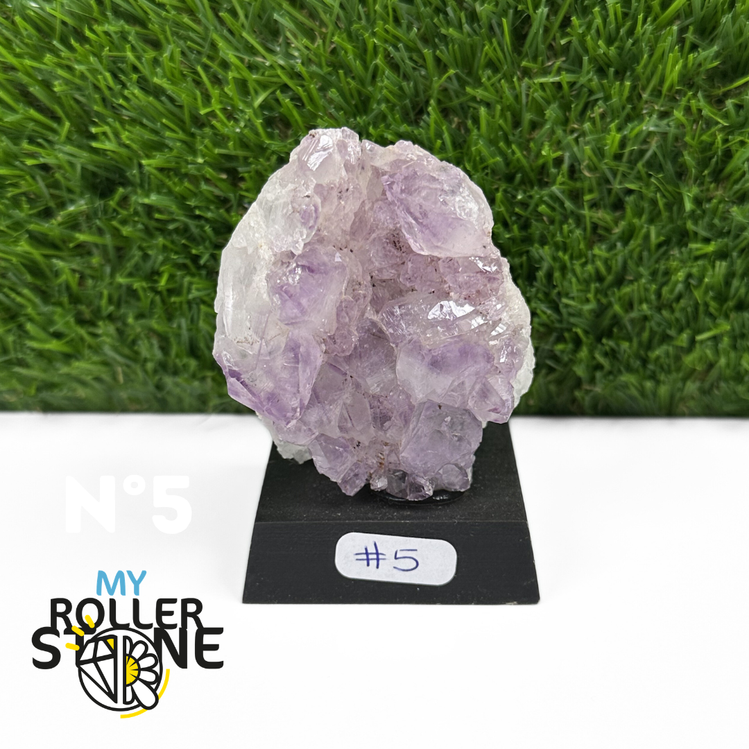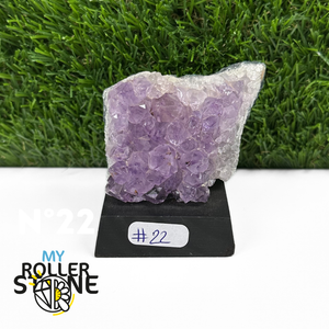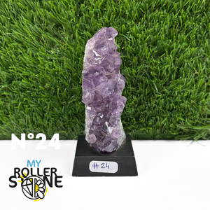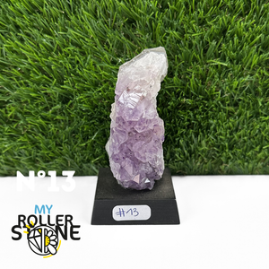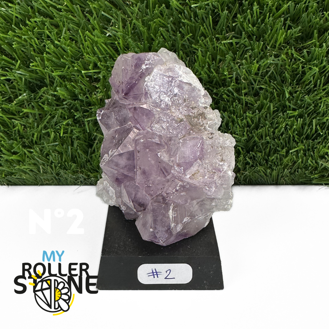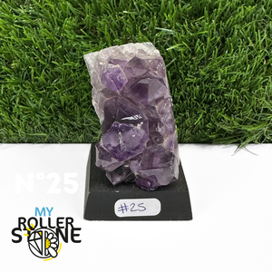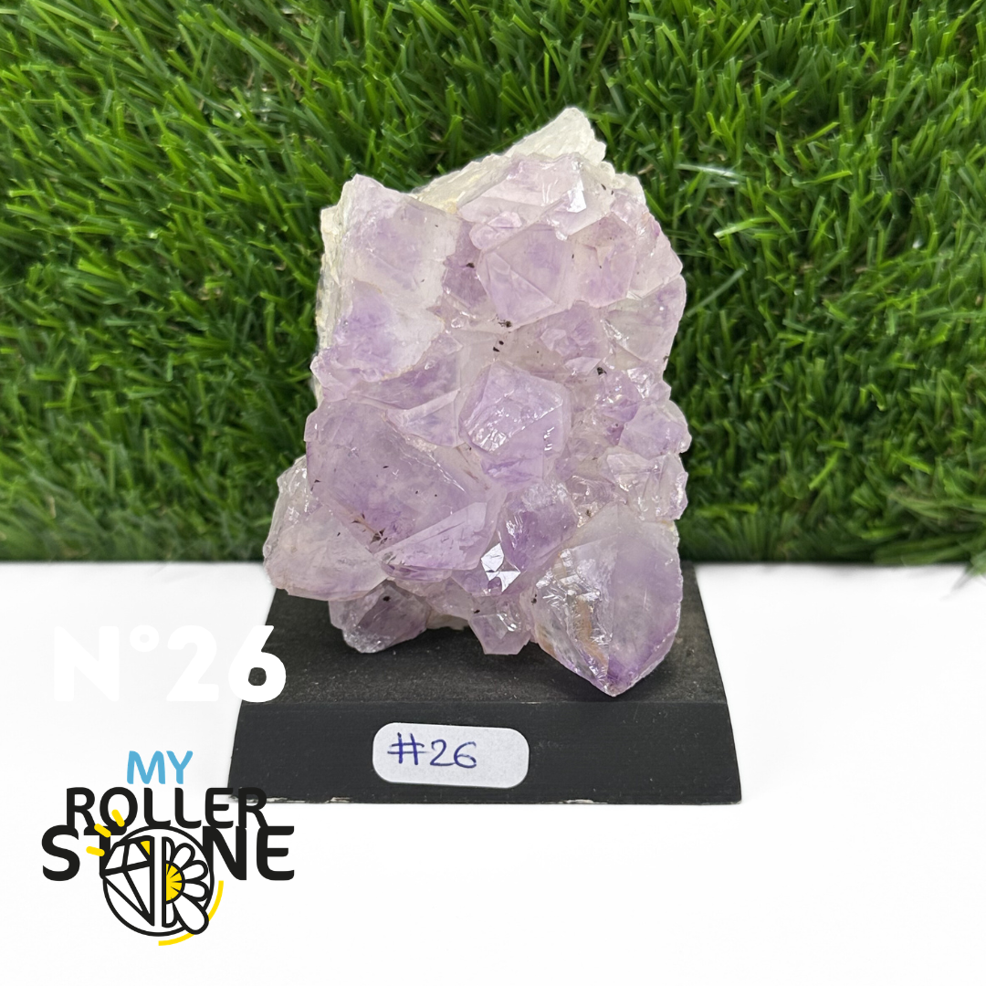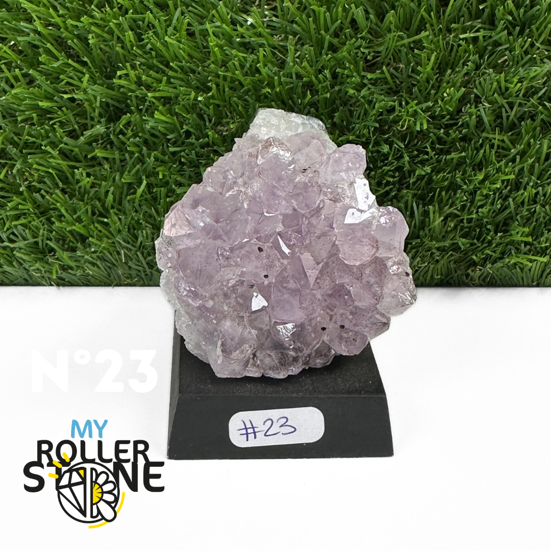 Originaire du Brésil, région mondialement reconnue pour la qualité exceptionnelle de ses gisements d’Améthyste, cette pierre naturelle révèle des cristaux lumineux et une teinte violette pure. Chaque pièce est façonnée et positionnée avec soin sur un présentoir en bois noir mat qui met en valeur ses reflets et sa profondeur.