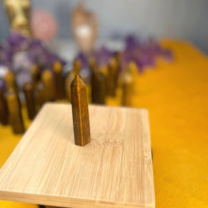 Les tours ou pointes en œil de tigre amplifient et concentrent de puissantes énergies dans une direction spécifique. Une pointe oeil de tigre peut être utilisé efficacement comme un puissant outil de manifestation. Nous vous recommandons de l'utiliser comme pierre centrale dans les grilles de cristal pour la vitalité, la richesse ou l'enracinement, car elle recueille l'énergie des autres cristaux et la concentre vers votre objectif.