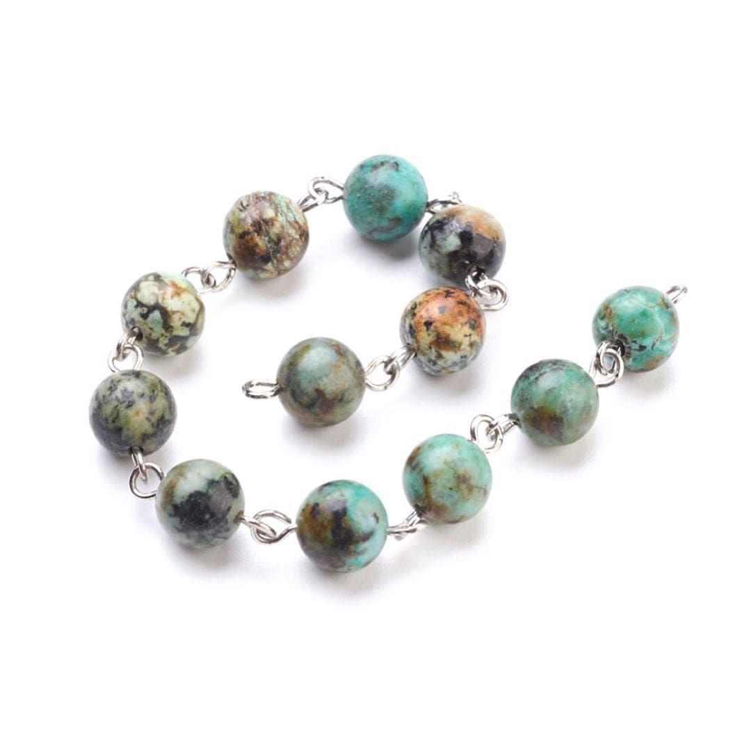 Confectionner-vous un joli bracelet ou un collier avec cette Chaîne perlée Turquoise Africaine . Ajoutez seulement un fermoir et le tour est joué !