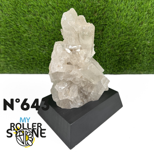 Amas de Cristal de Roche Naturel sur Socle en Bois Peint en Noir #643