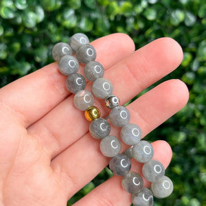 Chaque bracelet a une perle de finition en acier disponible en dorée ou argentée. Cette perle sert à cacher le nœud de l'élastique, garantissant une finition et un design épuré. Ce Bracelet Labradorite Sur-Mesure est parfait pour un usage quotidien, grâce à ses propriétés apaisantes, ou comme cadeau spécial pour quelqu'un que vous aimez.