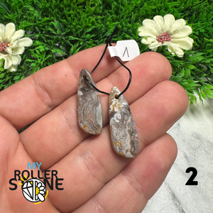 Paire de Cabochons percées Agate Mexicaine goute ovalisé