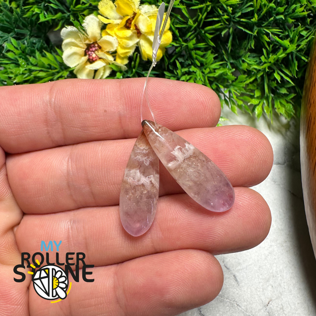 Paire de Cabochons percées Améthyste Agatisée Goutte