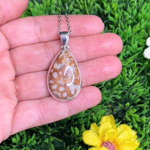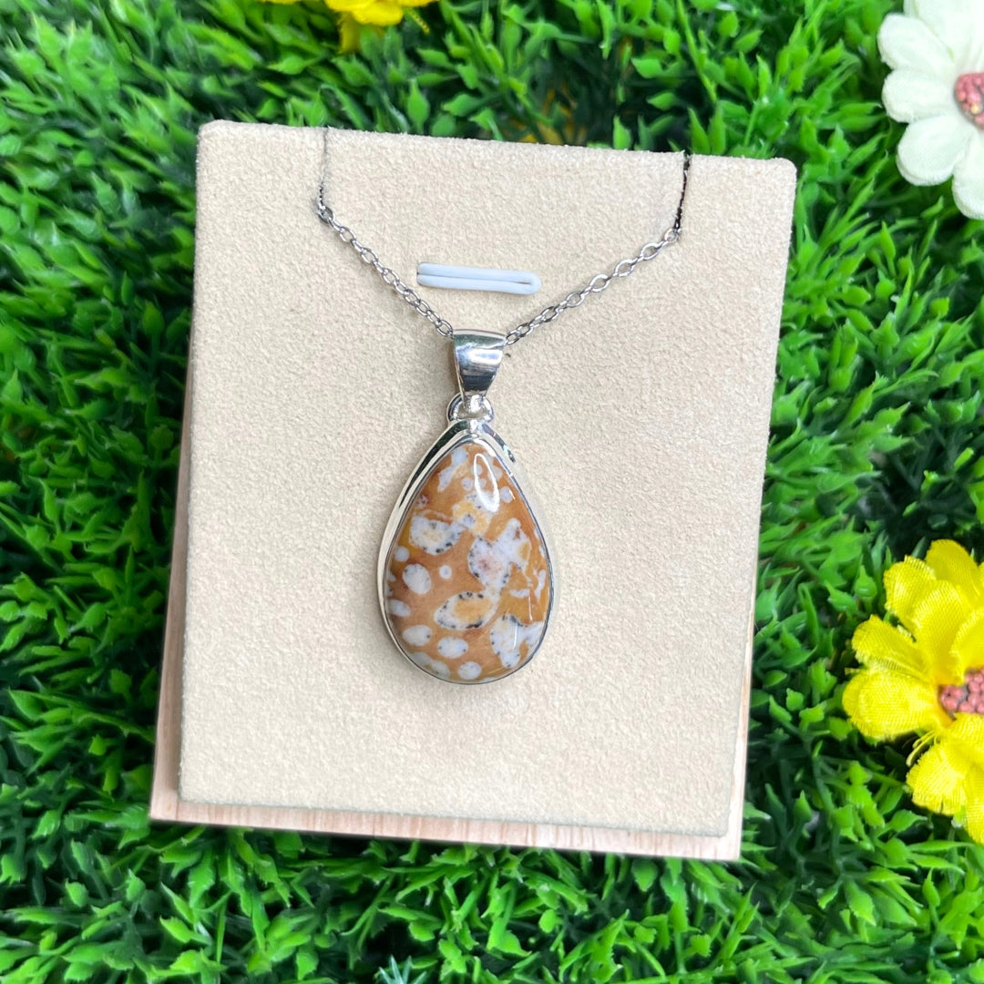 Pendentif Argent Jaspe Faon. Fabriqué à partir de Jaspe Faon véritable, ce pendentif mélange harmonieusement la pierre de
