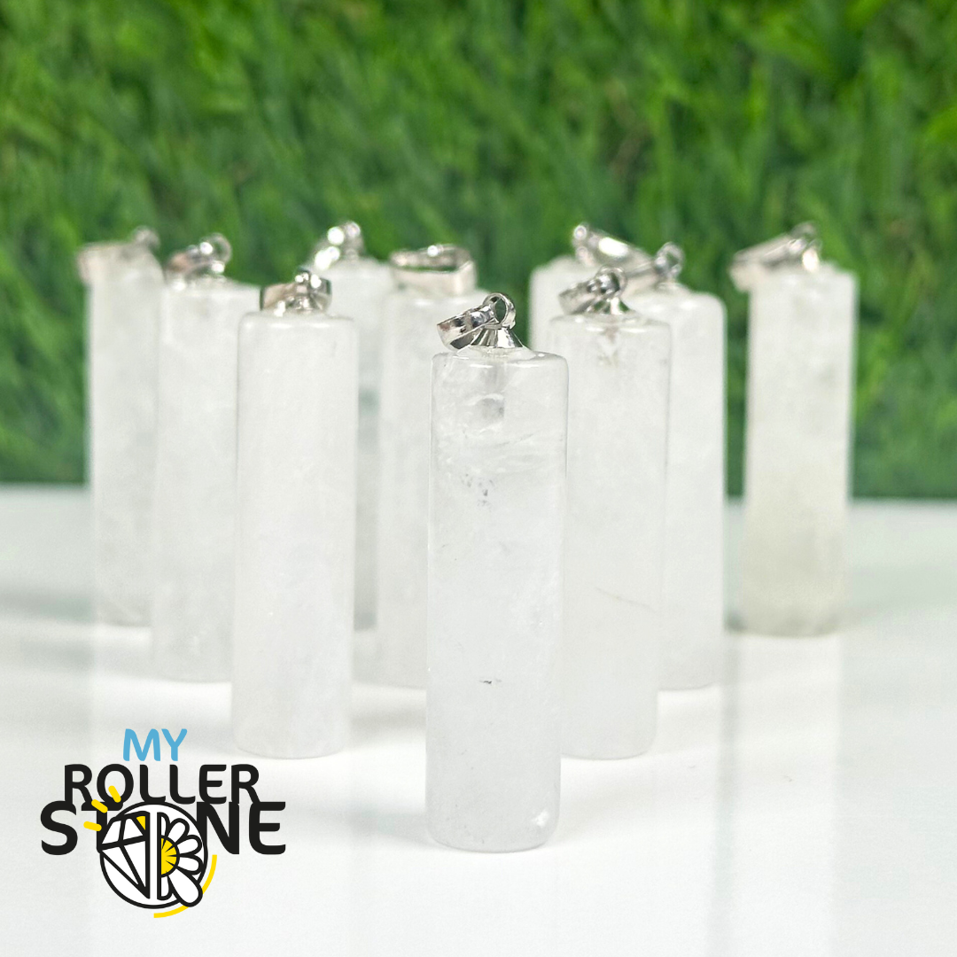 Pendentif Colonne en Cristal de Roche avec Bélière en Argent 925
