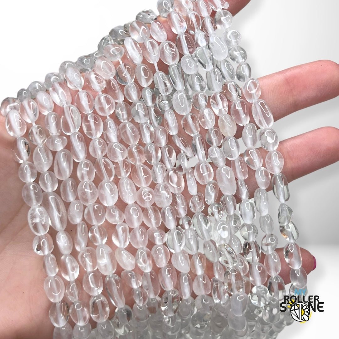 Cristal de Roche. Vendue en ligne de 38 cm, elle offre une polyvalence créative pour la confection d'un collier ras de cou ou de deux