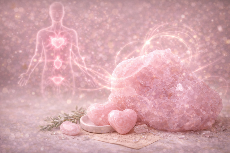 Dans une approche énergétique — et toujours en complément, jamais en remplacement d’un avis médical — le quartz rose est associé à la détente corporelle liée à l’apaisement émotionnel.