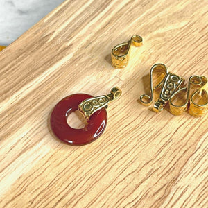 Glissez la bélière à travers le trou central de votre donut ou pierre percée, puis fixez-la à la chaîne ou au cordon de votre choix. Idéale pour créations artisanales, bijoux personnalisés ou pour transformer rapidement une pierre en pendentif élégant.