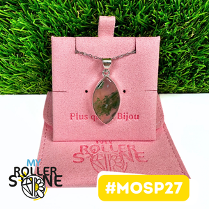 authentique. Appréciée pour ses inclusions végétales évoquant la mousse, les forêts ou les paysages naturels, l’Agate Mousse offre une lecture visuelle unique à chaque pierre. Chaque pendentif est une
