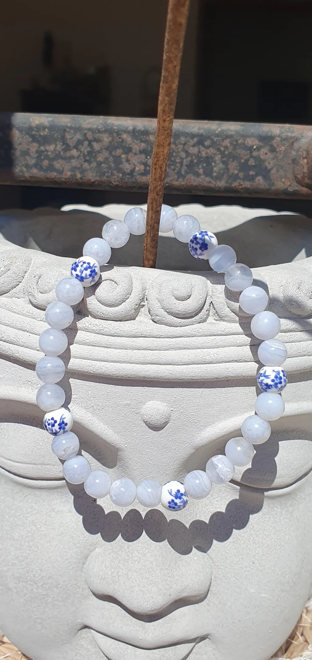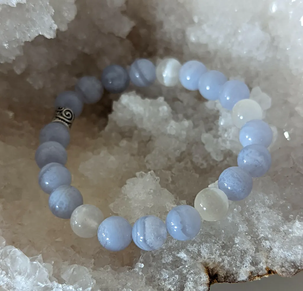 Perles naturelles d’Agate Bleue Lacée, également connue sous le nom de Calcédoine Bleue, de grade 3A. Cette pierre se distingue par ses bandes délicates bleu pastel et blanc, offrant un rendu doux, raffiné et extrêmement apaisant. Recherchée pour sa finesse et son élégance naturelle, l’Agate Bleue Lacée est idéale pour des créations lumineuses, harmonieuses et d’une grande sérénité visuelle.