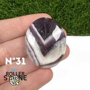 Améthyste Chevron naturelle de qualité 5A, reconnaissable à ses motifs en V alternant des nuances violettes profondes et blanches. Alliance naturelle de l’améthyste et du quartz, cette pierre se distingue par son esthétique graphique marquée et son énergie équilibrée, appréciée aussi bien en bijouterie artisanale qu’en création spirituelle.