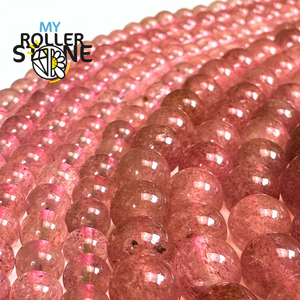 Perles naturelles de Quartz Fraise de Madagascar, grade 5A, reconnues pour leur transparence délicate et leurs inclusions rosées lumineuses. Une pierre raffinée et éclatante, idéale pour des créations féminines, harmonieuses et vibrantes.