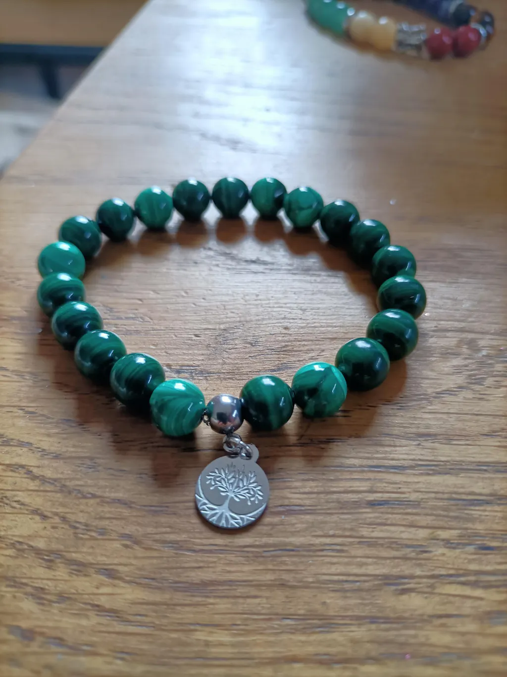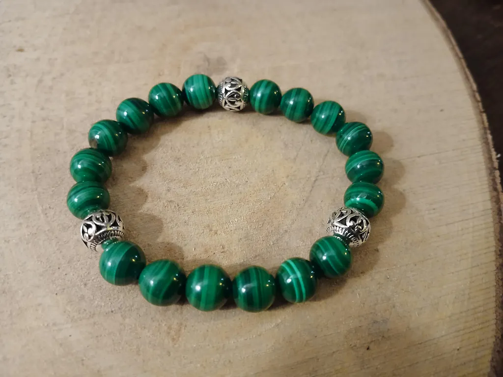 Perles naturelles de Malachite de grade 7A, reconnues pour leurs magnifiques bandes vertes concentriques, profonde et intenses, typiques des gisements du Congo. Cette pierre d’exception symbolise la transformation, la protection et l’équilibre émotionnel. Très appréciée pour des créations haut de gamme, la Malachite apporte élégance, caractère et une énergie puissante aux bijoux.