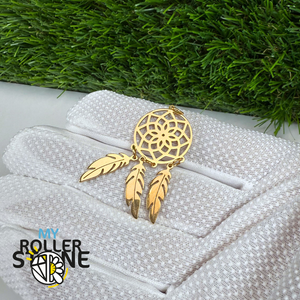 Ce pendentif Attrape-Rêves Cœur en acier inoxydable doré allie la douceur du symbole du cœur à la puissance protectrice de l’attrape-rêves. Élégant et raffiné, il incarne la protection, l’amour et la paix intérieure. Son design ajouré évoque l’harmonie des rêves et la sérénité de l’esprit, tout en apportant une touche spirituelle et lumineuse à vos créations de bijoux.