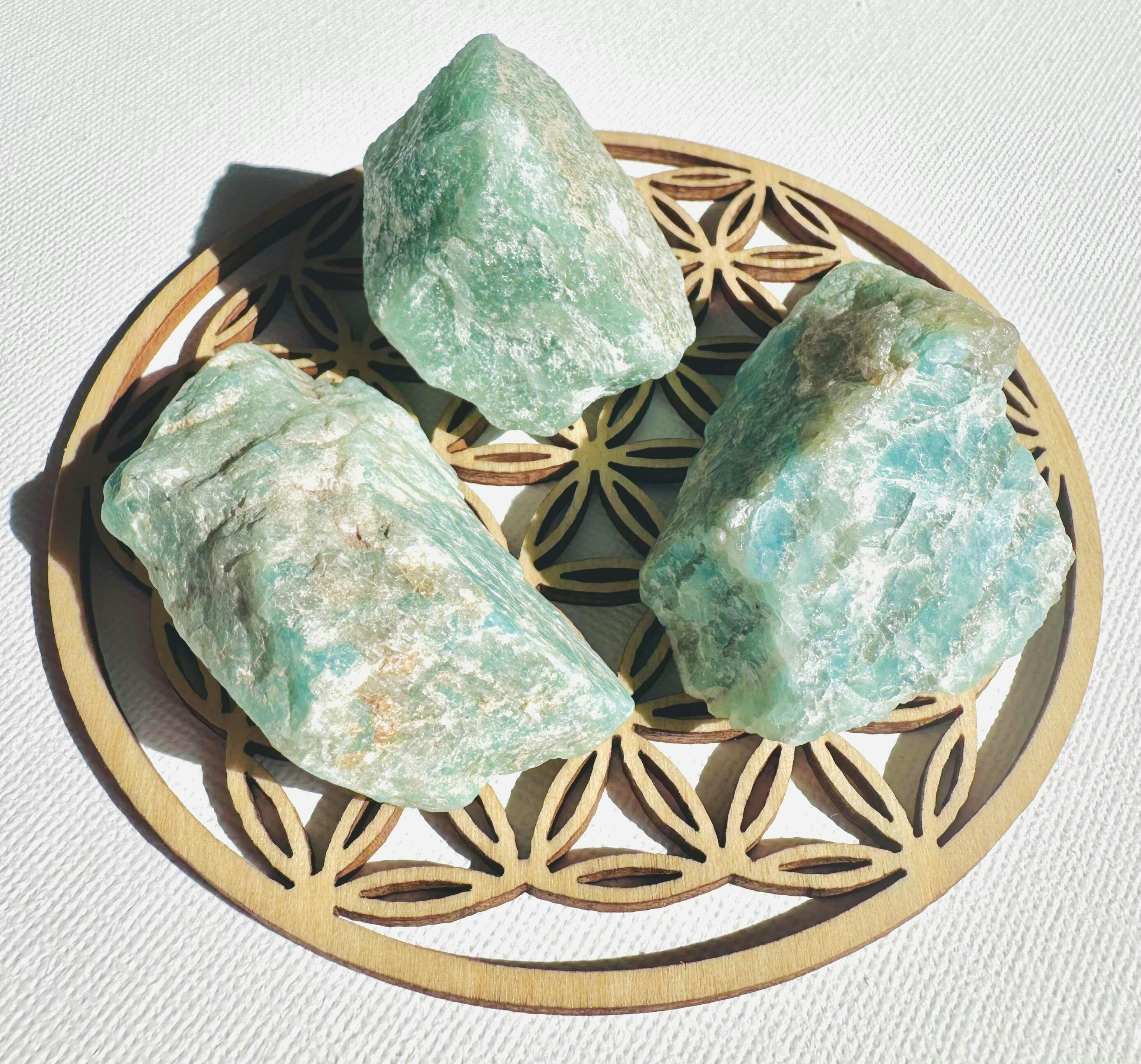 Appelée la pierre du courage et la pierre de la vérité, l'Amazonite permet à chacun de se fouiller et de découvrir ses propres vérités et son intégrité, et d'aller au-delà de la peur du jugement ou de la confrontation avec les autres pour vivre en harmonie avec ces croyances et ces valeurs. Il offre la liberté d'exprimer ses pensées et ses sentiments, et de fixer des limites fortes et claires, à la fois en interne comme autodiscipline et en externe sur ce que l'on est prêt à vivre ou dans la définition de son espace personnel
