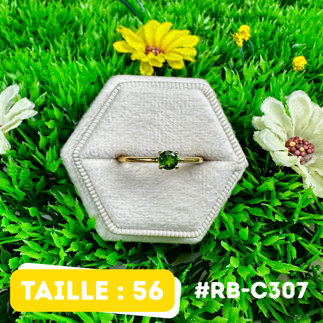 Bague Diopside Argent 925 Plaqué Or 18K Ovale (5 Tailles) (RB-C307)