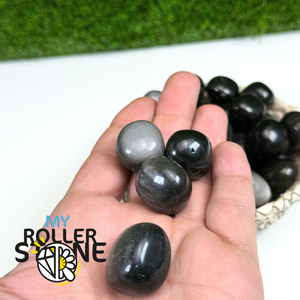 L’Obsidienne argentée est une roche volcanique naturelle issue du refroidissement rapide de la lave. Elle se caractérise par la présence de micro-inclusions créant des reflets argentés visibles selon l’angle de la lumière. Le roulage met en valeur ces effets tout en adoucissant les contours de la pierre.