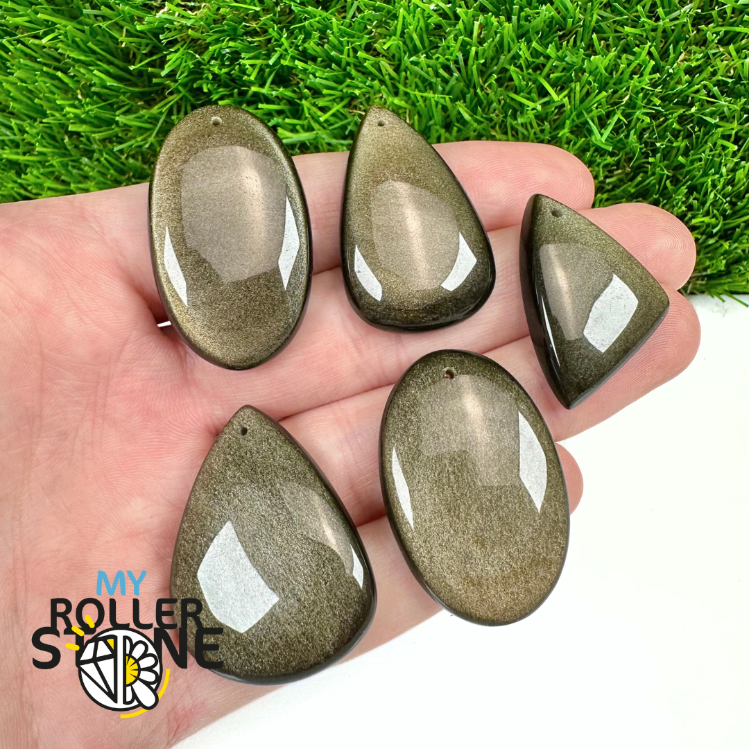 Pendentifs en pierres naturelles, cabochons ou galets percés prêts à porter. Matière triée pour la beauté des teintes et un polissage soigné.