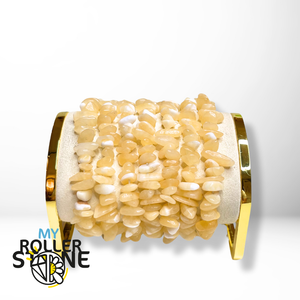 Découvrez notre Bracelet Jade Jaune Chips, confectionné à partir de véritables pierres naturelles façonnées en éclats uniques. Monté sur un bracelet élastique pour un confort optimal et disponible en 2 tailles différentes, il s'adapte facilement à votre poignet. La pierre de Jade Jaune offre des bienfaits énergétiques spécifiques, alliant esthétique et bien-être.