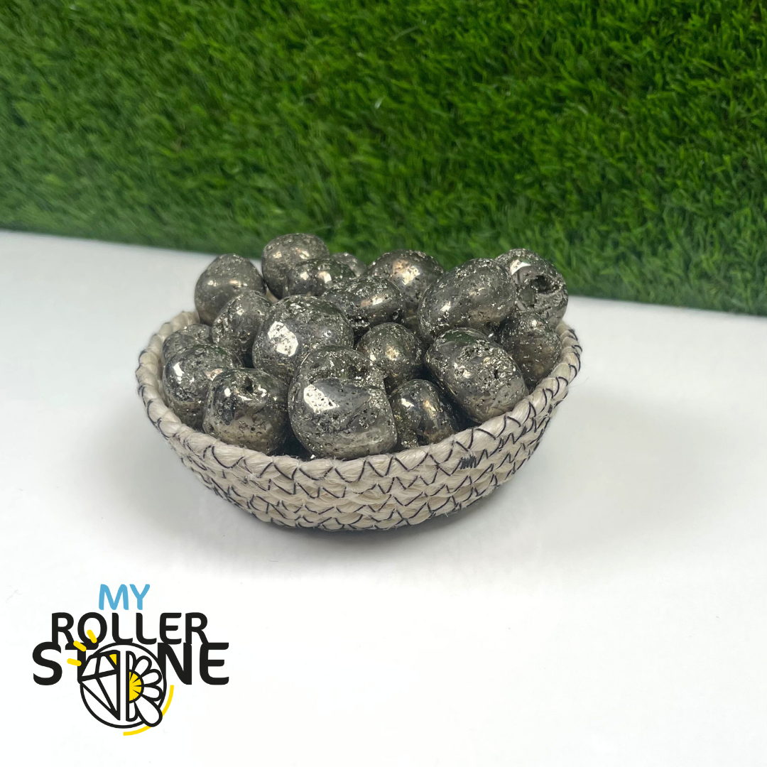 La Pyrite, également appelée "l'or des fous" en raison de sa ressemblance avec l'or, est soigneusement polie pour offrir une surface lisse et brillante. Chaque pierre roulée est unique, mettant en valeur ses cristaux naturels et son éclat doré caractéristique.