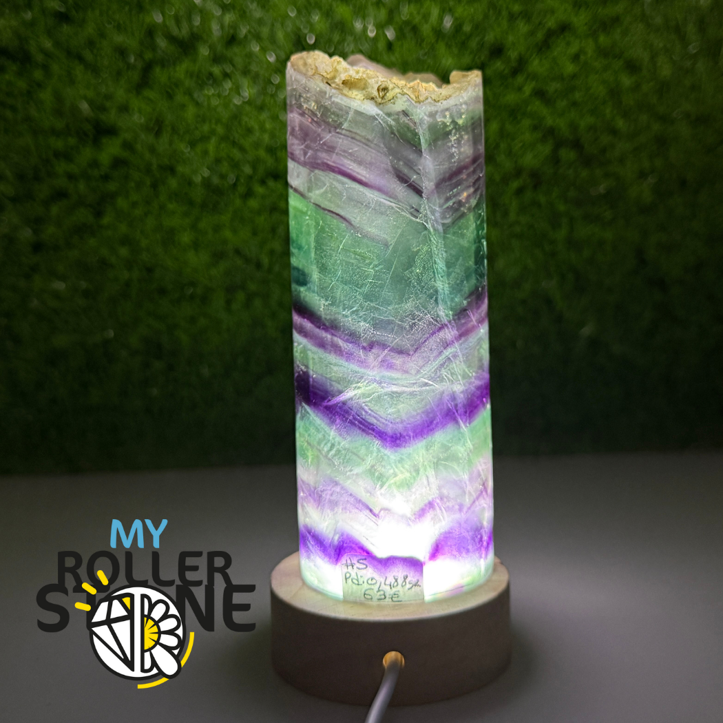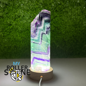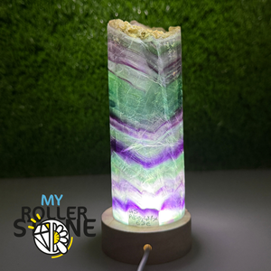 base lumineuse LED, elle offre un rendu visuel à la fois décoratif et apaisant. Chaque lampe est une pièce unique, mettant en valeur les variations naturelles propres à la Fluorite.