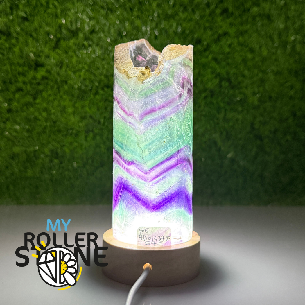 Fluorite est une pierre appréciée pour sa structure cristalline et ses zonations colorées naturelles. Polie tout en conservant une partie brute au sommet, cette lampe associe élégance et authenticité minérale. L’éclairage LED intégré illumine la pierre par transparence, accentuant les contrastes et la profondeur des couleurs.