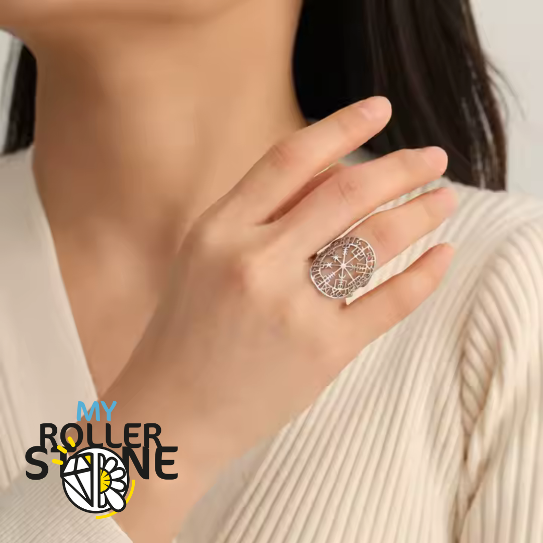 La Bague Réglable Vegvisir est ornée du célèbre symbole issu de la tradition nordique. Le Vegvisir, parfois appelé “compas runique”, est réputé pour aider son porteur à trouver sa voie et à ne jamais se perdre. Conçue pour être ajustable, cette bague allie un design captivant à une fonction pratique, s’adaptant facilement à différentes tailles de doigts.