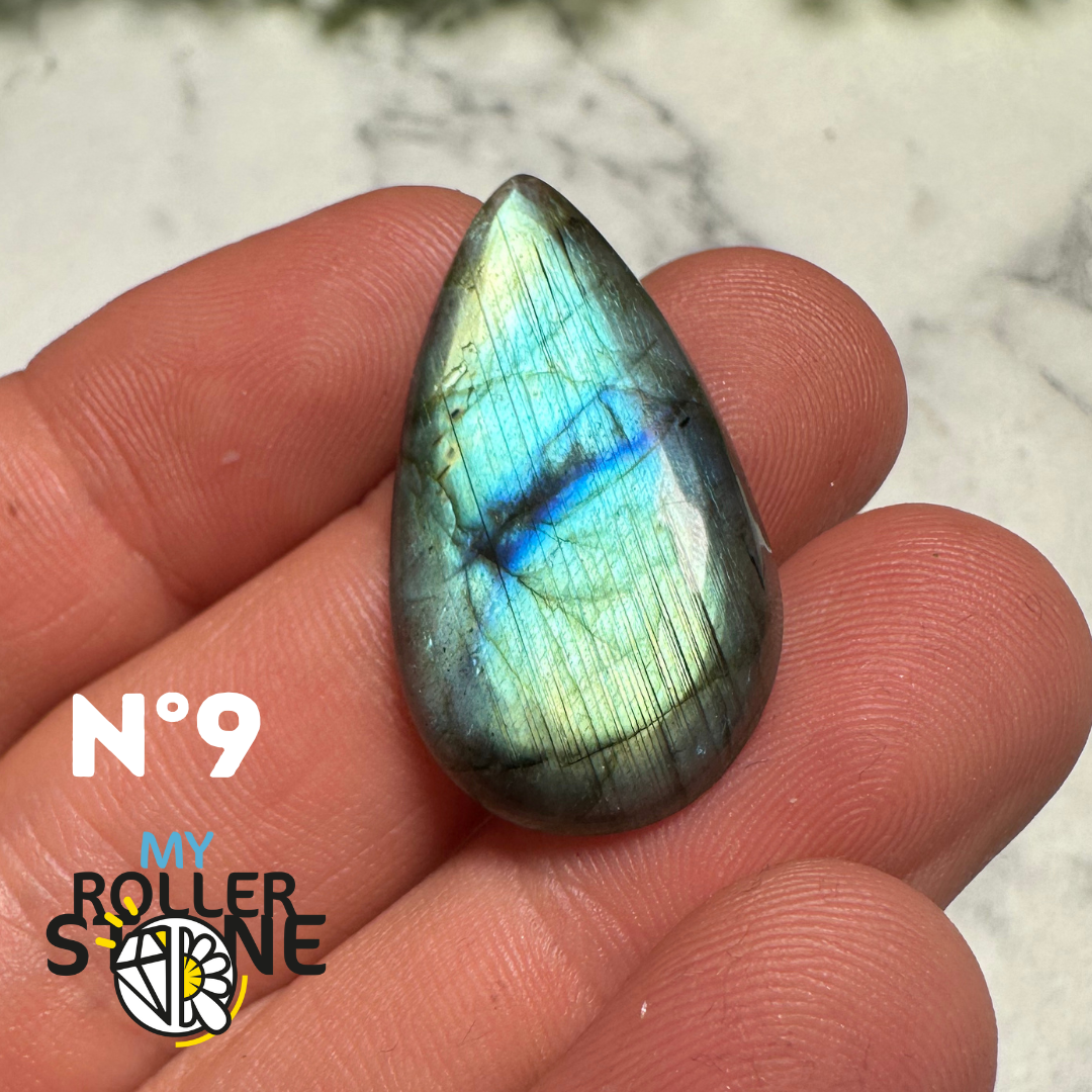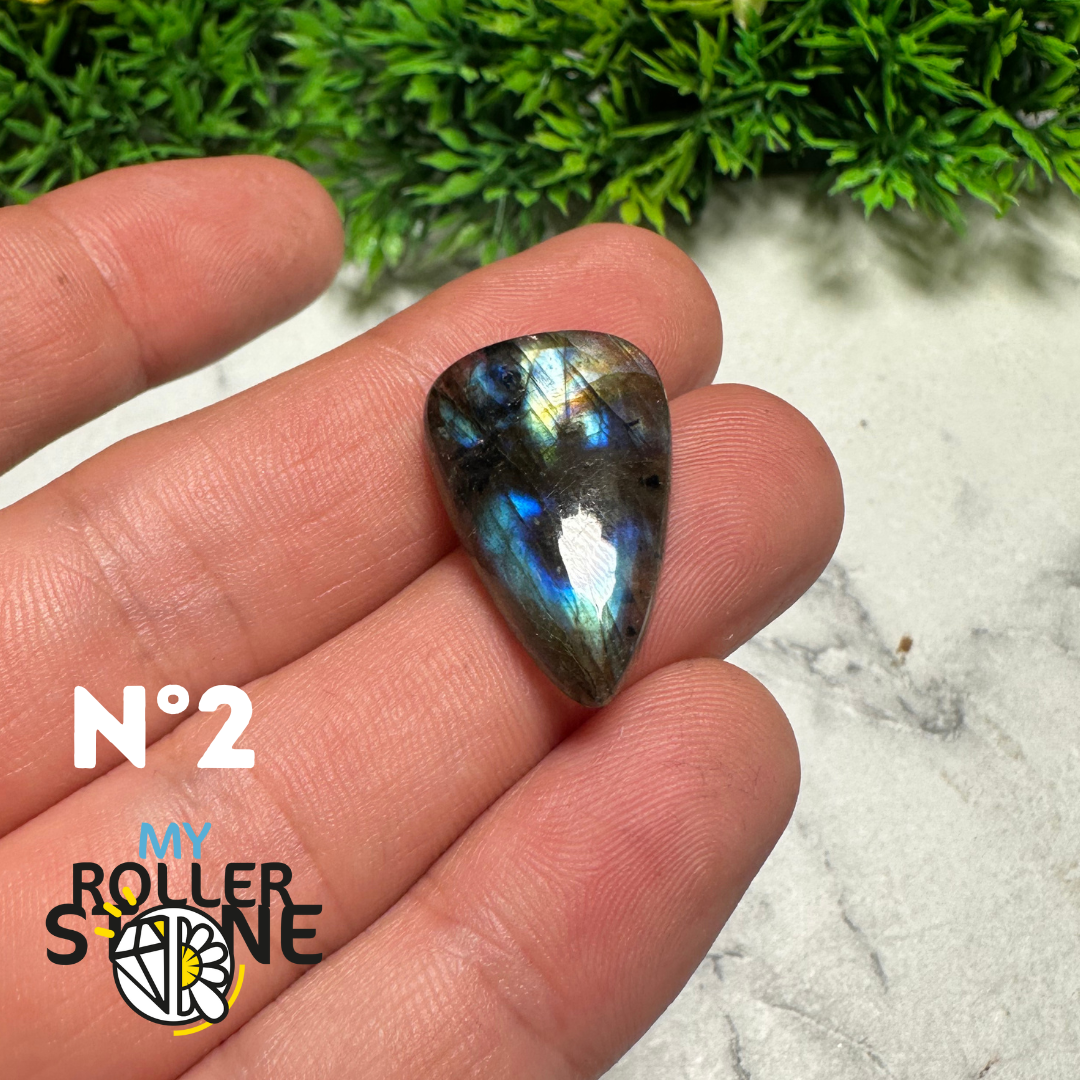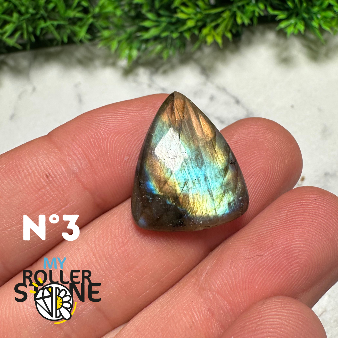 forme libre , une pierre naturelle dont la labradorescence – bleue, verte, dorée ou violette – semble faire danser la lumière sous chaque facette. Véritable œuvre d’art minérale, chaque