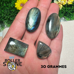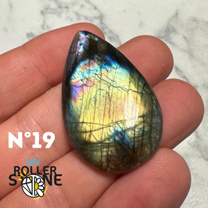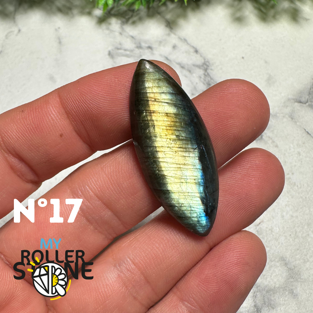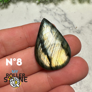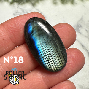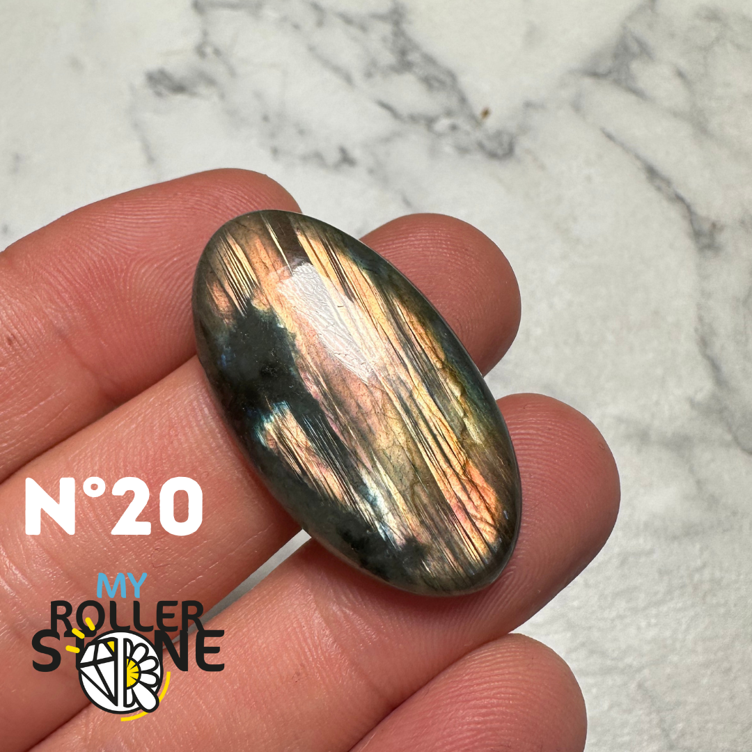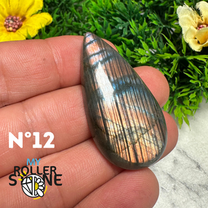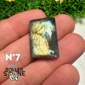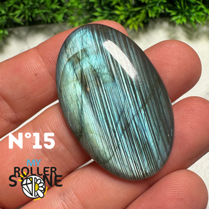 forme libre , une pierre naturelle dont la labradorescence – bleue, verte, dorée ou violette – semble faire danser la lumière sous chaque facette. Véritable œuvre d’art minérale, chaque