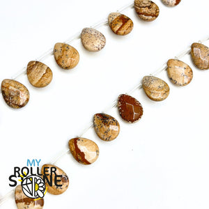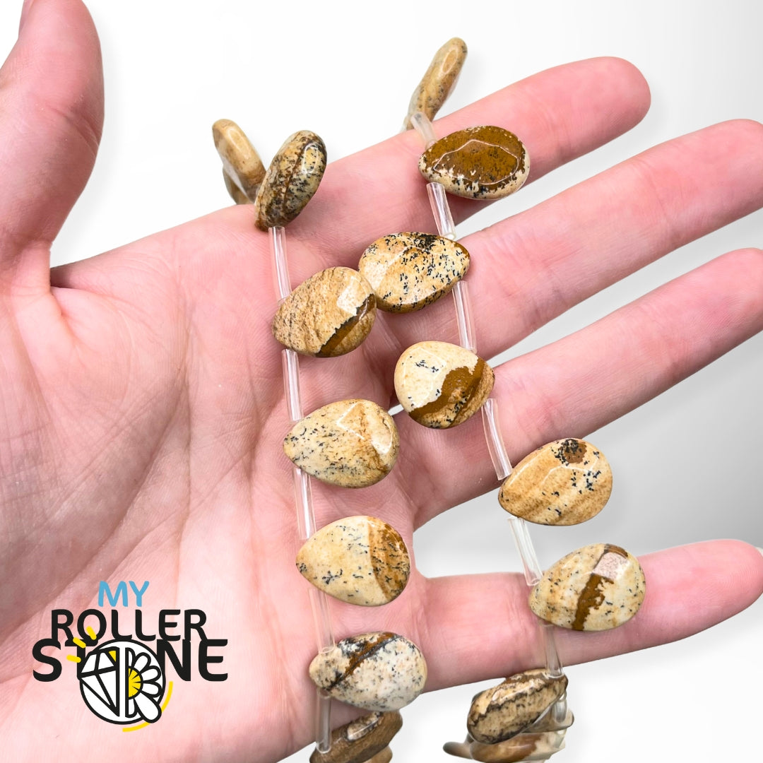 Découvrez nos Perles Gouttes Facettées  en Jaspe Paysage !  Elles seront le choix parfait pour vos créations de bijoux. Ces perles avec leur surface facettée sont fabriquées à partir de jaspe paysage, taillées avec précision pour créer une forme de goutte parfaite.