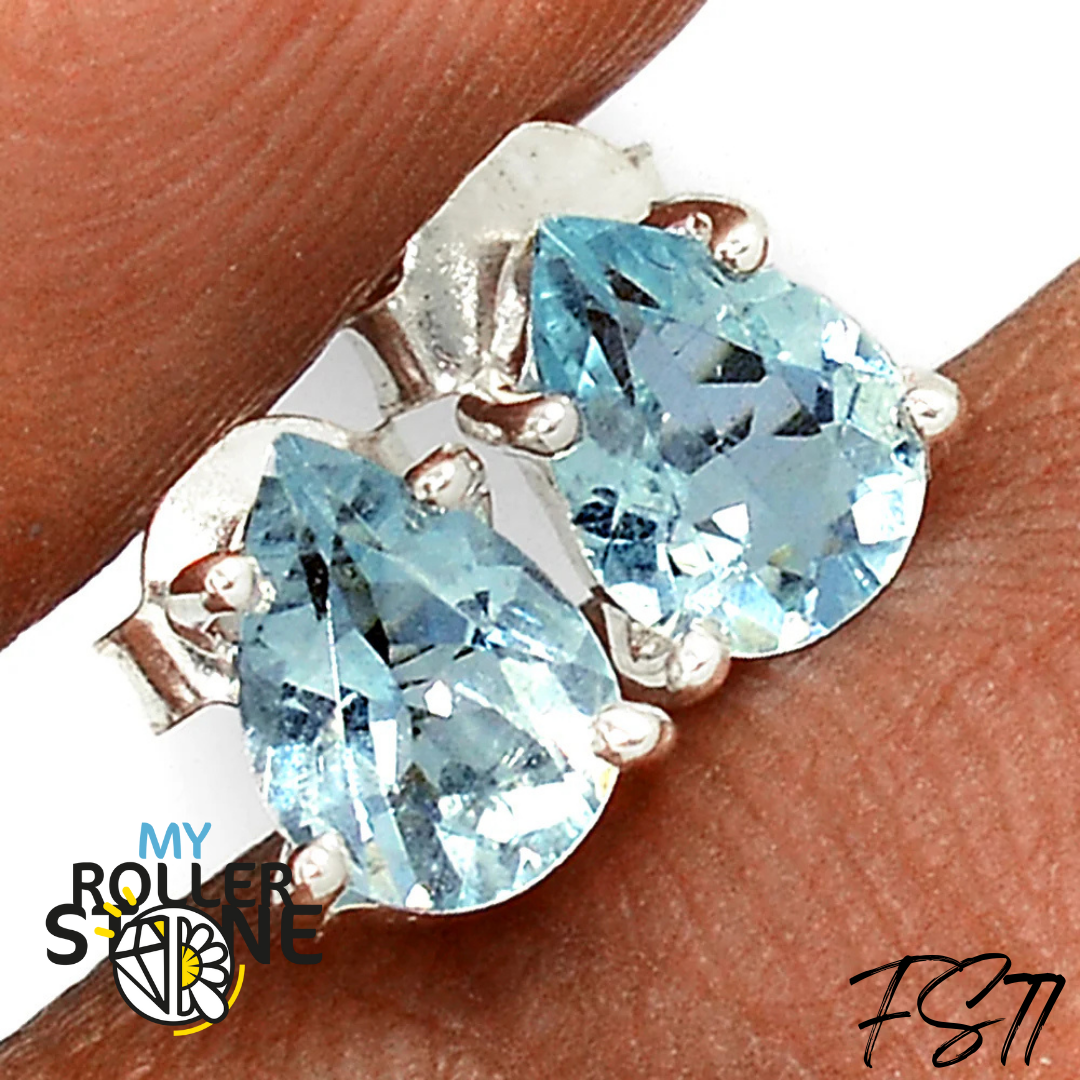 Boucles d'oreilles Facettée Argent 925 Aigue-Marine FS77