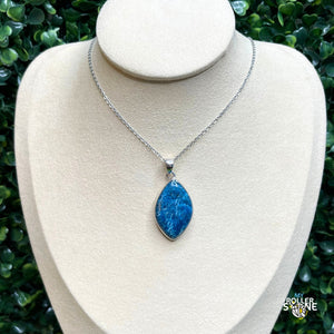 Découvrez notre Pendentif Argent Apatite avec une chaîne argenté en acier inoxydable pour un look élégant au quotidien. La pierre d'Apatite de haute qualité dans des teintes bleutées crée un superbe effet visuel sous toutes les lumières.